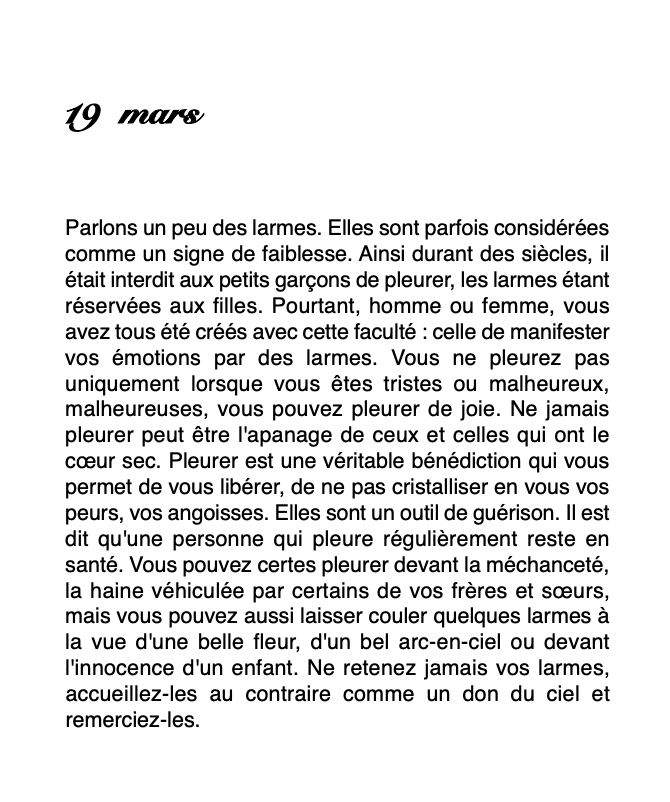 Message de Marie, canalisé par Nicole Dhuin, Les larmes, le 19/03/2026