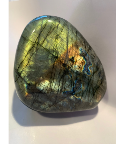 Labradorite avec de magnifiques reflets arc-en-ciel. Poids entre 300 g et 400 g.