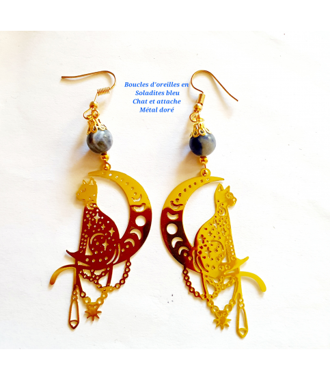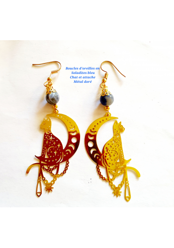 Boucles d'Oreilles en soladite bleue, métal doré. Attaches en acier anti-allergiques.